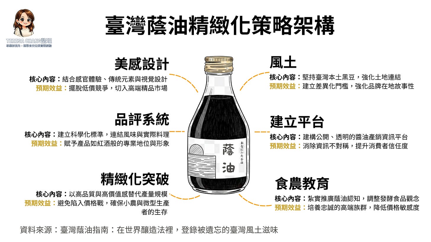 臺灣蔭油產業的復興,並非一場單純的復古運動,而是一場深刻的現代化革新。謝宜哲在《臺灣蔭油指南》中所揭示的,是一個結合風土感性與科學理性的商業藍圖。